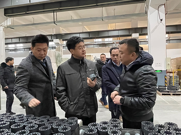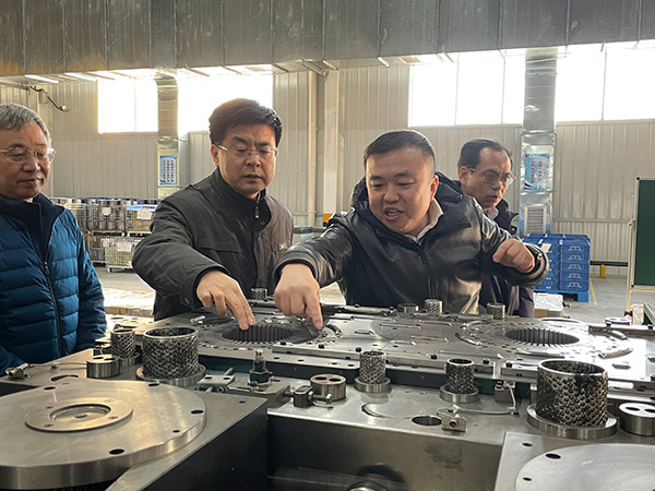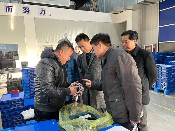 2021年1月8月下午,句容市委書記潘群陪同鎮江市委副書記鞏海濱蒞臨江蘇聯博精密五金制造有限公司考察指導工作。總經理肖慶鵬熱情接待并對新能源車間、模具車間產品及加工藝作出重點匯報。